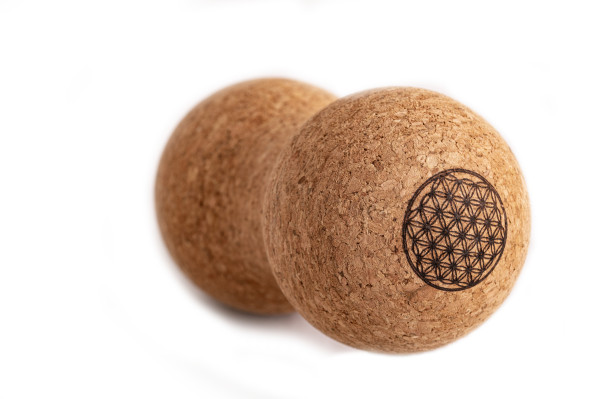 Kork Doppel-Massageball mit Blume des Lebens Motiv