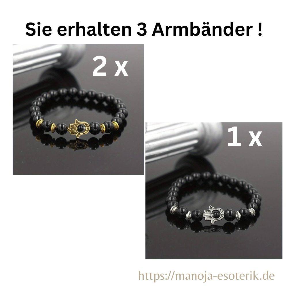 Dieses handgefertigte Hamsa Armband vereint zeitlose Eleganz mit spiritueller Bedeutung. Schwarze Perlen auf einem elastischen Band rahmen einen detailreich gearbeiteten Hamsa-Hand-Anhänger aus Metall – wahlweise in edlem Gold- oder klassischem Silberton. Die Hamsa Hand gilt als Symbol des Schutzes, der inneren Stärke und der positiven Energie – ein ausdrucksstarkes Accessoire mit Wirkung.