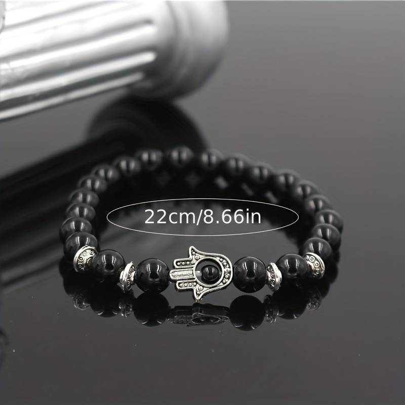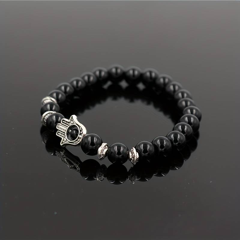 • Schwarze Perlen mit Hamsa-Hand-Anhänger aus Metall (Gold oder Silber)