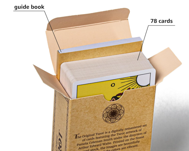 Das beigefügte Guidebook erklärt die Grundbedeutungen der großen und kleinen Arkana sowie einfache Legesysteme und Deutungsansätze. Es eignet sich besonders für Einsteiger, die eine zuverlässige, bildhafte Einführung in die Kartensprache suchen, genauso wie für erfahrene Praktizierende, die ein kompaktes, solides Reise‑Deck wünschen. Die stabile Box schützt das Deck sicher und macht es zu einem schönen Geschenk für Einsteiger und Tarot‑Liebhaber.