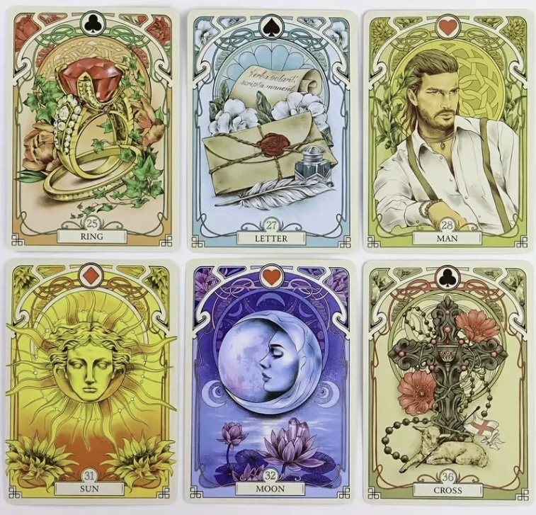 – 36 Lenormand-Orakelkarten mit romantischer Gestaltung