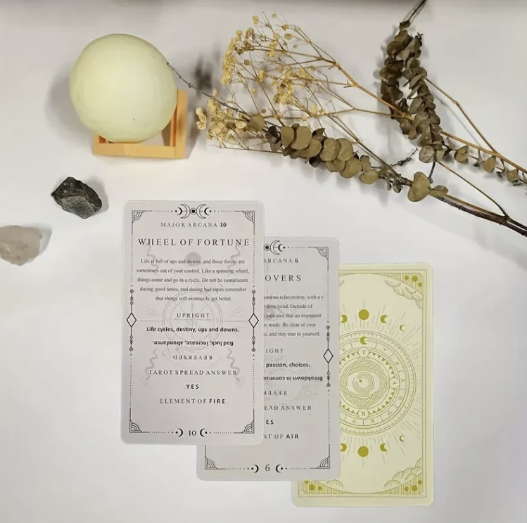 Dieses klassische 78-Karten-Tarotdeck bietet dir wertvolle Einblicke in persönliche Themen, spirituelle Entwicklung und alltägliche Entscheidungen. Basierend auf den traditionellen Archetypen des Tarots enthält das Deck kraftvolle Karten wie Die Liebenden, Der Turm, Der Mond oder Die Sonne – jede mit ihrer ganz eigenen symbolischen Bedeutung.